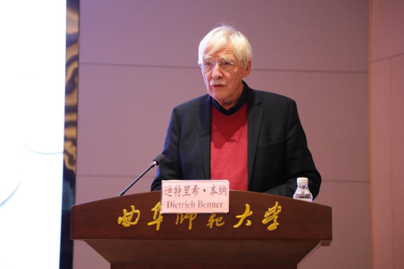 教育学部讯(通讯员:张萌 杨雨珊 赵筱月 张奇淼 刘瑞琪)11月5日上午,教育学部“学诲大讲堂”系列讲座第七讲于西区图书馆东辅楼报告厅成功举办。本次讲座特邀当代德国著名教育家、柏林洪堡大学荣休教授、华东师范大学顾问教授迪特里希·本纳,华东师范大学国际与比较教育研究所教授、所长彭正梅,南京师范大学道德教育研究所彭韬博士作题为“中德道德教育项目研究及其在教育、教学和能力理论方面取得的进展”的学术报告。教育学院院长、教育学部常务副主任高伟教授主持活动。