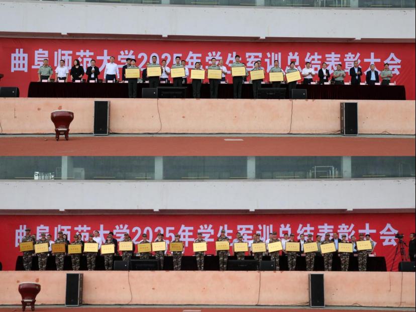9月21日下午,曲阜师范大学2025级学生军训总结表彰大会在南操场举行,为期13天的军训圆满收官。教育学院在表彰大会上表现突出,被评为军训“内务卫生先进单位”和“优秀连队”,46名新生获评“优秀标兵”。