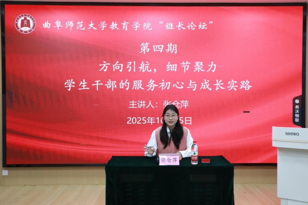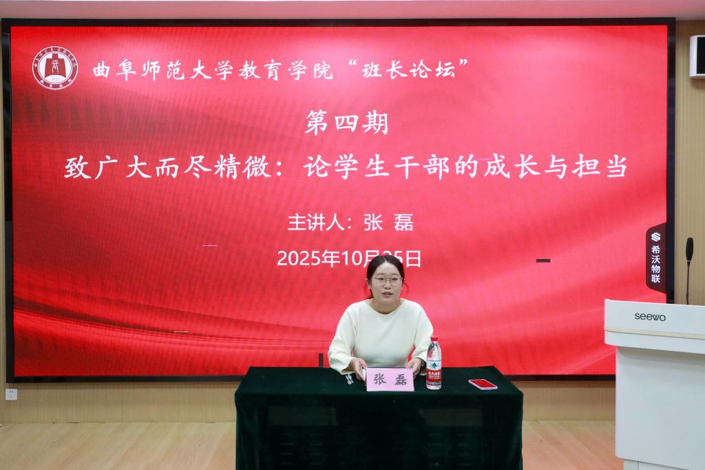 教育学院讯(通讯员:怀壹鑫 林美霖)10月25日下午,教育学院“班长论坛”第四期在教育南楼123室顺利举办。本期“班长论坛”以学生干部的成长与担当为主题,由教育学院学生会原副主席兼宿管部部长、2022级教育学2班班长张仓萍,学生会原副主席兼办公室主任、2022级小学教育2班团支部书记张磊担任主讲。教育学院2026届学生会主席张馨月主持活动,教育学院主要学生干部参加活动。