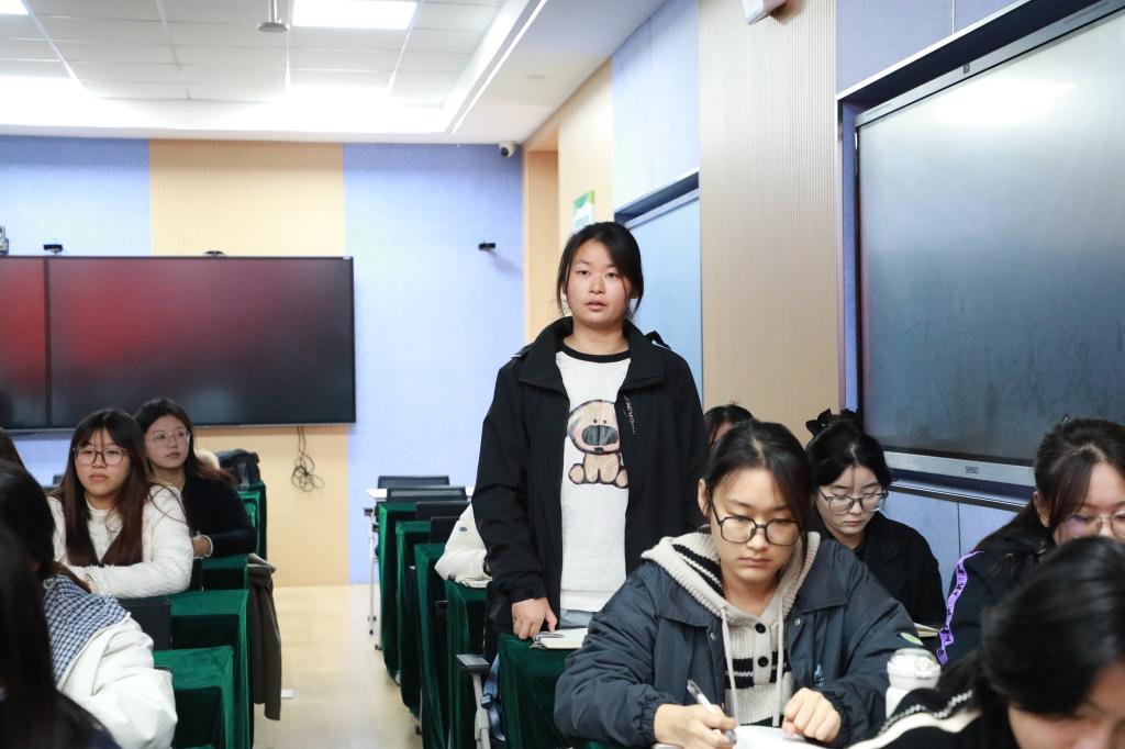 在交流研讨环节,张仓萍结合学生干部的工作实际,围绕重要材料提交时间规划这一常见问题,引导在场学生干部深入思考解决方法。她提出的“先梳理核心矛盾,再团队协作落实”的解决方法,为学生干部优化工作方法提供了切实参考。
