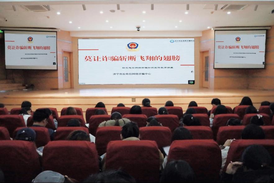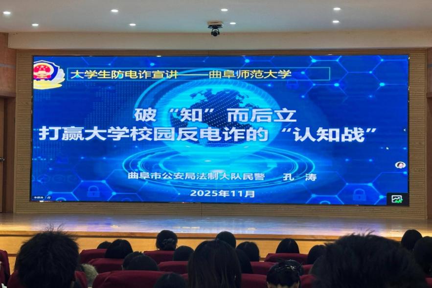本次培训会特邀济宁市反诈中心宣传讲师、市反诈协会专职秘书长陈延龙和曲阜市公安局法制大队警官孔涛主讲,曲阜师范大学保卫处处长胡一杰主持。