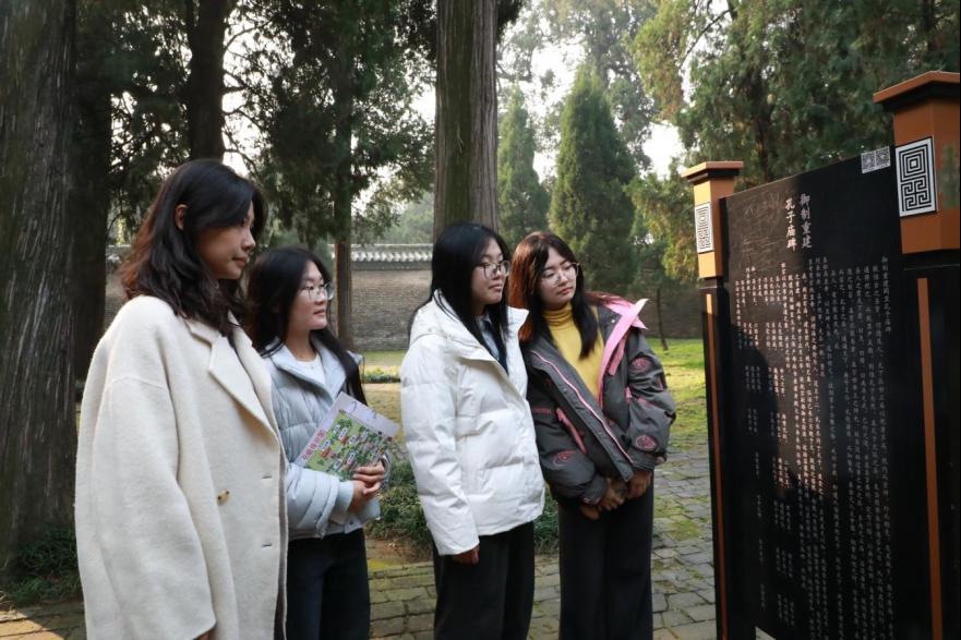 当日,新生们怀着崇敬之心有序集结,开启了这场浸润式文化研学之旅。步入孔庙,同学们游览殿内碑刻匾额,深切感受“有教无类”“因材施教”等传统教育理念的深厚内涵。随后走进孔府,从家谱石碑到“诗礼传家”匾额,沉浸式体悟孔氏家族文化积淀,汲取育人启示。在参观孔林的过程中,同学们在苍松翠柏与碑碣间静默前行,体会“慎终追远”的内涵,心生对中华文明绵延生命力的敬畏。